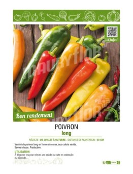 accueil POIVRON LONG (DOUX) Disponible en 2 formats : 210 x 148 mm ou 210 x 297 mm 0,97 € Prix Sélectionner une option cached liste de souhaits cached