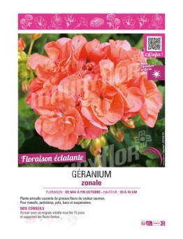 cached liste de souhaits cached GÉRANIUM ZONALE (saumon) Disponible en 2 formats : 210 x 148 mm ou 210 x 297 mm 0,97 € Sélectionner une option
