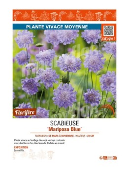 accueil SCABIOSA columbaria Mariposa Blue voir SCABIEUSE Disponible en 2 formats : 210 x 148 mm ou 210 x 297 mm 0,97 € Prix Sélectionner une option cached liste de souhaits cached