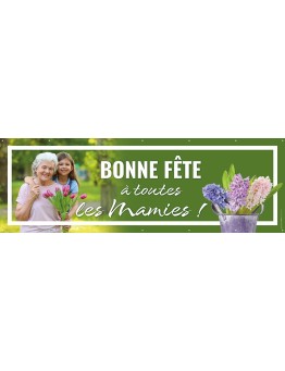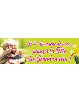 accueil Banderole 110 - fête des grand-mères Formats disponibles :1 m x 50 cm - 2 x 1 m - 3 x 1 m - 4 x 1 m.FRANCO À PARTIR DE LA 2e BÂCHE.PRIX EN BAISSE POUR LES BÂCHES PVC. 19,00 € Prix Sélectionner une option cached liste de souhaits cached