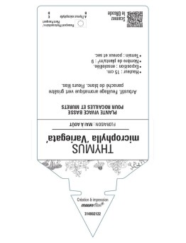 accueil THYMUS MICROPHYLLA VARIEGATA voir Thym (lilas) Les variétés HORS STOCK sont imprimées en commandes groupées.Délai de livraison : de 10 à 15 jours.Minimum de commande par variété : 50 ex. 5,84 € Prix cached Ajouter au panier cached liste de souhaits cached
