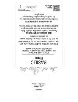 cached liste de souhaits cached etiquettes BASILIC GREC Les variétés HORS STOCK sont imprimées en commandes groupées.Délai de livraison : de 10 à 15 jours ouvrés.Minimum de commande par variété : 50 ex. 5,84 € cached Ajouter au panier