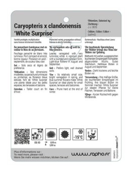 Nouveau accueil Caryopteris x clandonensis 'White Surprise' * Prix dégressif en fonction des quantités :Prix H.T. départ pour 50 chromos• de 50 à 2 950 chromos = 9.08 € HT - (1 à 59 paquets de 50 chromos)• de... 9,35 € Prix cached Ajouter au panier cached liste de souhaits cached