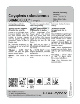 Nouveau accueil Caryopteris x clandonensis GRAND BLEU® 'Inoveris' * Prix dégressif en fonction des quantités :Prix H.T. départ pour 50 chromos• de 50 à 2 950 chromos = 9.08 € HT - (1 à 59 paquets de 50 chromos)• de... 9,35 € Prix cached Ajouter au panier cached liste de souhaits cached