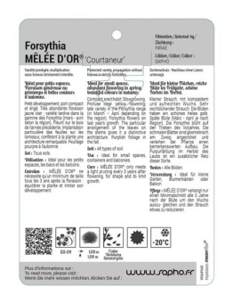 Nouveau accueil Forsythia MAREE D'OR® 'Courtasol' * Prix dégressif en fonction des quantités :Prix H.T. départ pour 50 chromos• de 50 à 2 950 chromos = 9.08 € HT - (1 à 59 paquets de 50 chromos)• de... 9,35 € Prix cached Ajouter au panier cached liste de souhaits cached