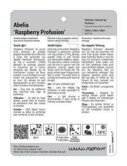 Nouveau cached liste de souhaits cached accueil Abelia ‘Raspberry Profusion’ Les variétés HORS STOCK sont imprimées en commandes groupées.Délai de livraison : de 10 à 15 jours ouvrés.Minimum de commande par variété : 50 ex. 12,44 € Sélectionner une option