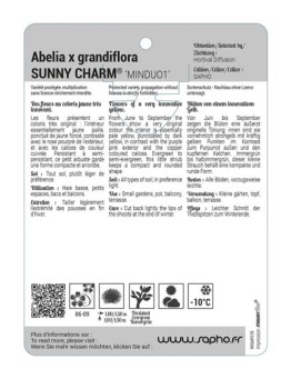 Nouveau accueil Abelia x grandiflora SUNNY CHARM® 'MINDUO1' Les variétés HORS STOCK sont imprimées en commandes groupées.Délai de livraison : de 10 à 15 jours ouvrés.Minimum de commande par variété : 50 ex. 12,44 € Prix Sélectionner une option cached liste de souhaits cached