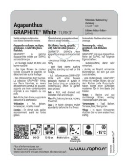 Nouveau cached liste de souhaits cached accueil Agapanthus GRAPHITE® White... Les variétés HORS STOCK sont imprimées en commandes groupées.Délai de livraison : de 10 à 15 jours ouvrés.Minimum de commande par variété : 50 ex. 12,44 € Sélectionner une option