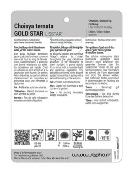 Nouveau cached liste de souhaits cached accueil Choisya ternata GOLD STAR... Les variétés HORS STOCK sont imprimées en commandes groupées.Délai de livraison : de 10 à 15 jours ouvrés.Minimum de commande par variété : 50 ex. 12,44 € Sélectionner une option