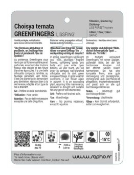 Nouveau accueil Choisya ternata GREENFINGERS 'LISSFING' Les variétés HORS STOCK sont imprimées en commandes groupées.Délai de livraison : de 10 à 15 jours ouvrés.Minimum de commande par variété : 50 ex. 12,44 € Prix Sélectionner une option cached liste de souhaits cached