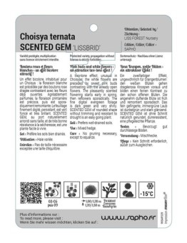 Nouveau cached liste de souhaits cached accueil Choisya ternata SCENTED GEM... Les variétés HORS STOCK sont imprimées en commandes groupées.Délai de livraison : de 10 à 15 jours ouvrés.Minimum de commande par variété : 50 ex. 12,44 € Sélectionner une option