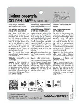 Nouveau accueil Cotinus coggygria GOLDEN LADY® ‘MINCOJAU3’ Les variétés HORS STOCK sont imprimées en commandes groupées.Délai de livraison : de 10 à 15 jours ouvrés.Minimum de commande par variété : 50 ex. 12,44 € Prix Sélectionner une option cached liste de souhaits cached