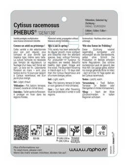 Nouveau cached liste de souhaits cached accueil Cytisus racemosus PHEBUS®... Les variétés HORS STOCK sont imprimées en commandes groupées.Délai de livraison : de 10 à 15 jours ouvrés.Minimum de commande par variété : 50 ex. 12,44 € Sélectionner une option