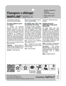 Nouveau cached liste de souhaits cached Elaeagnus x ebbingei... Les variétés HORS STOCK sont imprimées en commandes groupées.Délai de livraison : de 10 à 15 jours ouvrés.Minimum de commande par variété : 50 ex. 12,44 € Sélectionner une option