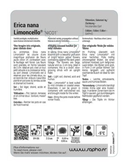 Nouveau cached liste de souhaits cached accueil Erica nana Limoncello® 'NICO1' Les variétés HORS STOCK sont imprimées en commandes groupées.Délai de livraison : de 10 à 15 jours ouvrés.Minimum de commande par variété : 50 ex. 12,44 € Sélectionner une option