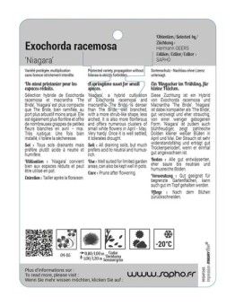 Nouveau cached liste de souhaits cached Exochorda racemosa 'Niagara' Les variétés HORS STOCK sont imprimées en commandes groupées.Délai de livraison : de 10 à 15 jours ouvrés.Minimum de commande par variété : 50 ex. 12,44 € Sélectionner une option
