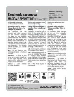Nouveau accueil Exochorda racemosa MAGICAL® SPRINGTIME ‘Kolmasprit’ Les variétés HORS STOCK sont imprimées en commandes groupées.Délai de livraison : de 10 à 15 jours ouvrés.Minimum de commande par variété : 50 ex. 12,44 € Prix Sélectionner une option cached liste de souhaits cached