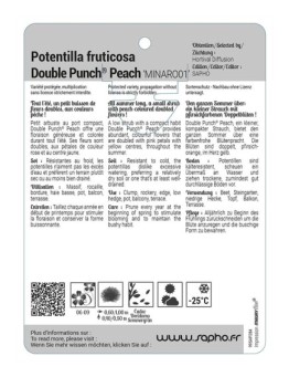 Nouveau accueil Potentilla fruticosa Double Punch® Peach 'MINARO01' Les variétés HORS STOCK sont imprimées en commandes groupées.Délai de livraison : de 10 à 15 jours ouvrés.Minimum de commande par variété : 50 ex. 12,44 € Prix Sélectionner une option cached liste de souhaits cached