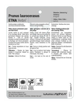 Nouveau cached liste de souhaits cached Prunus laurocerasus ETNA... Les variétés HORS STOCK sont imprimées en commandes groupées.Délai de livraison : de 10 à 15 jours ouvrés.Minimum de commande par variété : 50 ex. 12,44 € Sélectionner une option