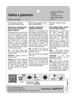 Nouveau cached liste de souhaits cached Salvia 'Bleu Armor' Les variétés HORS STOCK sont imprimées en commandes groupées.Délai de livraison : de 10 à 15 jours ouvrés.Minimum de commande par variété : 50 ex. 12,44 € Sélectionner une option