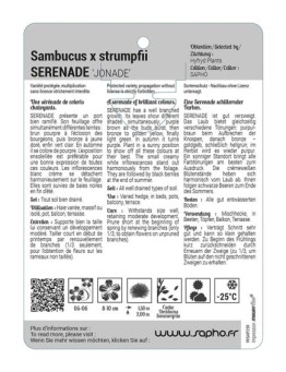 Nouveau accueil Sambucus x strumpfii SERENADE 'JONADE' Les variétés HORS STOCK sont imprimées en commandes groupées.Délai de livraison : de 10 à 15 jours ouvrés.Minimum de commande par variété : 50 ex. 12,44 € Prix Sélectionner une option cached liste de souhaits cached