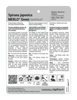 Nouveau cached liste de souhaits cached accueil Spiraea japonica MERLO®... Les variétés HORS STOCK sont imprimées en commandes groupées.Délai de livraison : de 10 à 15 jours ouvrés.Minimum de commande par variété : 50 ex. 12,44 € Sélectionner une option