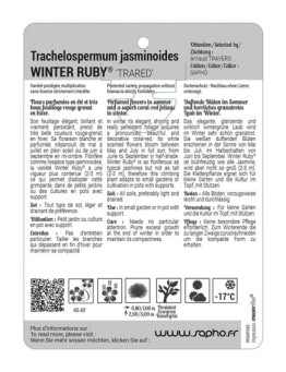Nouveau accueil Trachelospermum jasminoides WINTER RUBY® 'TRARED' Les variétés HORS STOCK sont imprimées en commandes groupées.Délai de livraison : de 10 à 15 jours ouvrés.Minimum de commande par variété : 50 ex. 12,44 € Prix Sélectionner une option cached liste de souhaits cached